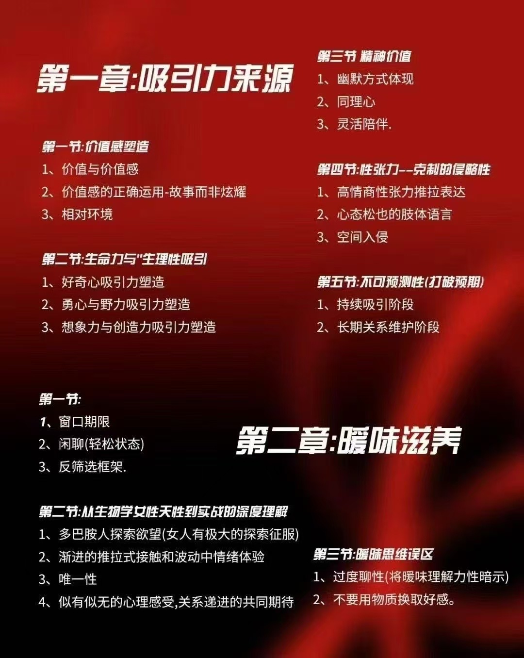 阿姆网课 情感课堂 男生情感 11天前 火种情感《猎心者吸引力》 火种情感《猎心者吸引力》真男人不要输在表达上 内容从搭讪、聊天、约会各方面结合实战案例讲解吸引力的获得与运用! 火种情感 所有课程内容从网络收集整理,如有侵权请联系微信:70075683 删除阿姆网课众筹平台-百度网盘下载 » 火种情感《猎心者吸引力》