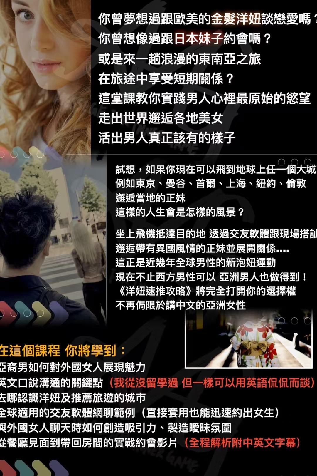 阿姆网课 情感课堂 男生情感 11天前 AMG《洋妞速推攻略-亞裔男的覺醒x跨越種族的約會策略》加密课 🔥🔥 爆炸发布AMG《洋妞速推攻略-亞裔男的覺醒x跨越種族的約會策略》加密课 含實際傳訊息範例講解及約會影片(中英文雙字幕) 另有英語學習心得 教你從零到一開口說英語把洋妞。 港台课程 所有课程内容从网络收集整理,如有侵权请联系微信:70075683 删除阿姆网课众筹平台-百度网盘下载 » AMG《洋妞速推攻略-亞裔男的覺醒x跨越種族的約會策略》加密课
